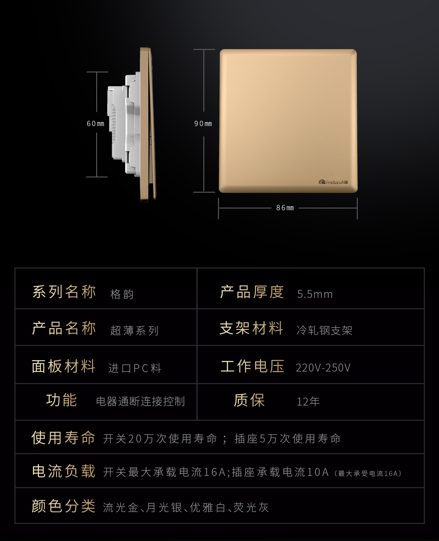 飛雕產(chǎn)品 開關(guān)插座 開關(guān)插座 格韻·Air系列